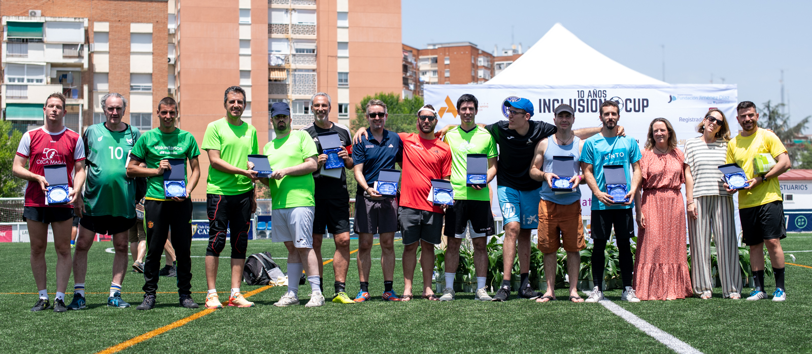 Parece mentira, pero este año hemos cumplido 10 ediciones del Inclusion Cup, un aniversario muy especial que hemos vivido con más emoción, equipos y apoyos que nunca: 12 equipos corporativos, 170 jugadores, se han disputado 25 partidos intensos y varios duelos se decidieron en los penaltis, lo que hizo la jornada aún más emocionante. ¡Cada año aumenta la intensidad y el compromiso!